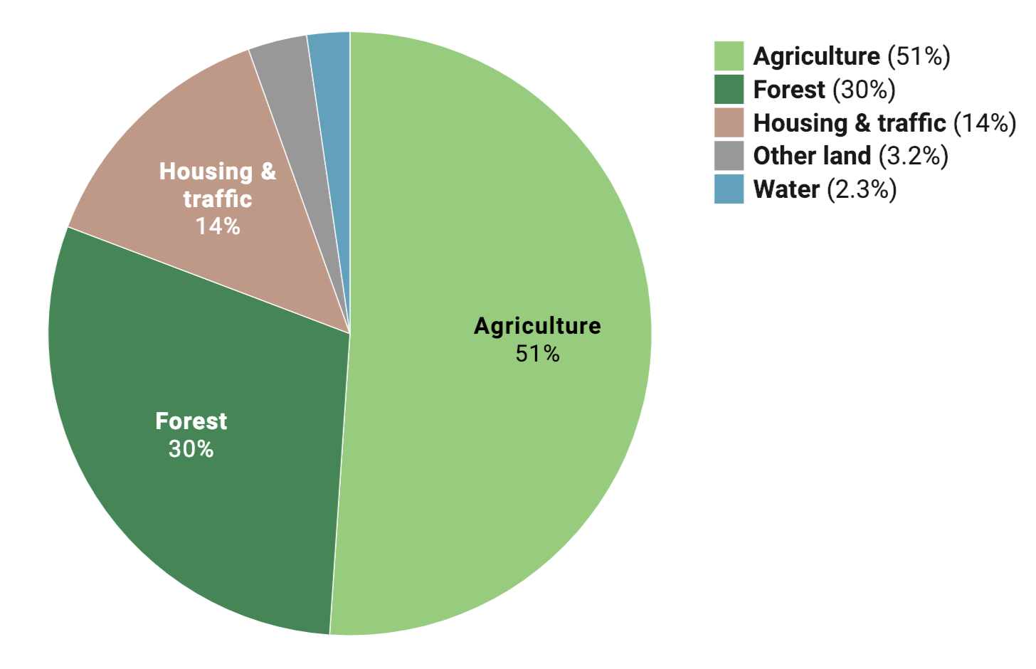 Outside labels with "Show values" turned on. The color key disabled itself automatically when you turn on outside labels, since the available space wouldn't be enough to show both the outside labels and the color key.