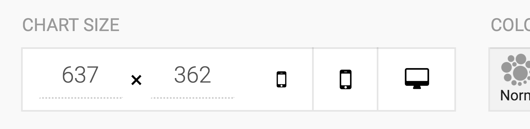 You can also specify the exact size of the chart by defining the height and width in pixels with the help of the boxes below the chart: