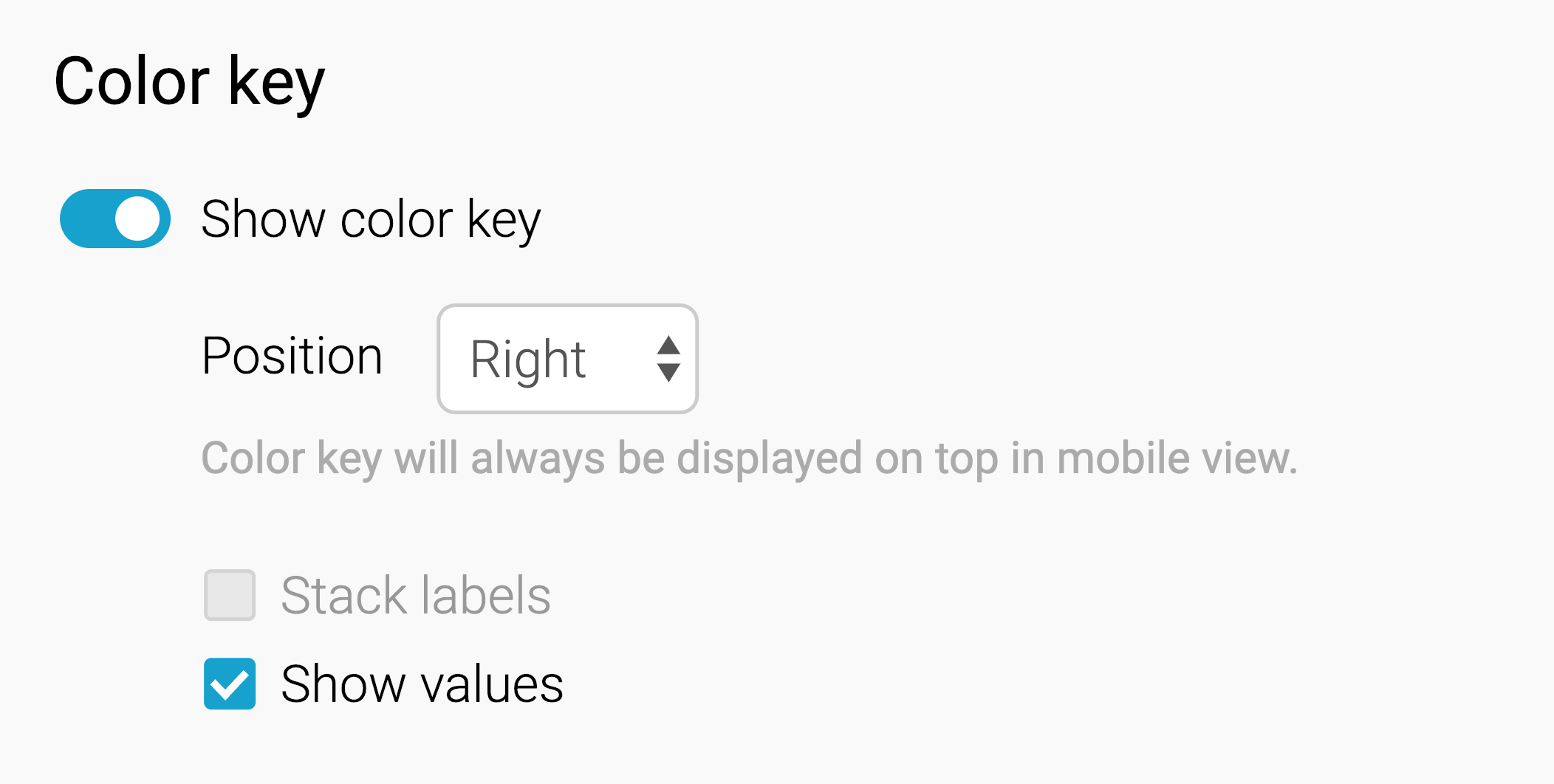 Inside labels with "Show labels" and "Show values" turned on, and color key enabled (scroll down to learn more about how to enable the color key):