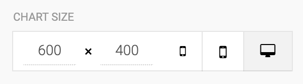 In any tab of step 3: Visualize, you can click, hold, and drag the arrow in the lower right corner to scale the chart window or manually determine the dimension of the chart by entering values in the boxes below the chart ("Chart Size"). We recommend doing this step first, but you can change the size of your chart at any point.