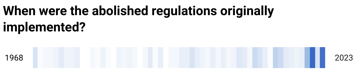 There’s no centralized source of information on the reforms — but I discovered that the Minister of Deregulation, Federico Sturzenegger, had been sharing updates through his public posts on X (Twitter). I compiled a total of 79 posts referencing various deregulations and examined the specific rules that were either repealed or modified. These 79 actions affected a total of 527 regulations from previous administrations, 54% of which were abolished completely.