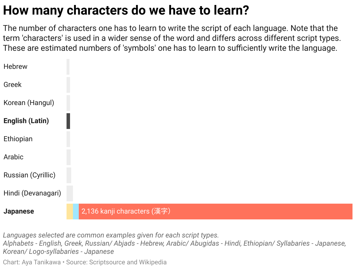 Thanks for reading! What writing systems and scripts did you grow up with? What do you use now and when do you use them? I'm curious to learn about your language journeys too. Feel free to drop me an email at aya@datawrapper.de or leave a comment below. See you next week!