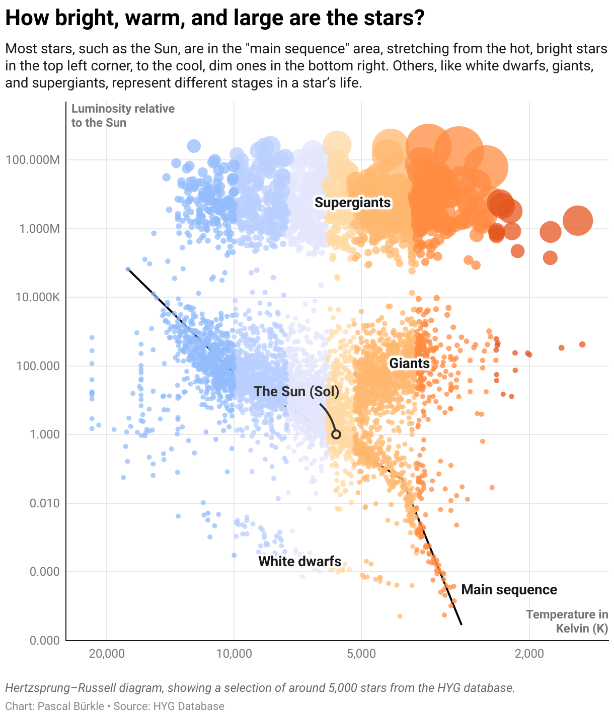 Hi there! I’m Pascal, a developer on the Datawrapper app team. Today, we’re not talking about Taylor Swift’s new album, but rather the physical stars in the sky, their quite extreme life, and what they have in common with the famous pop star, you, me, and all of us.